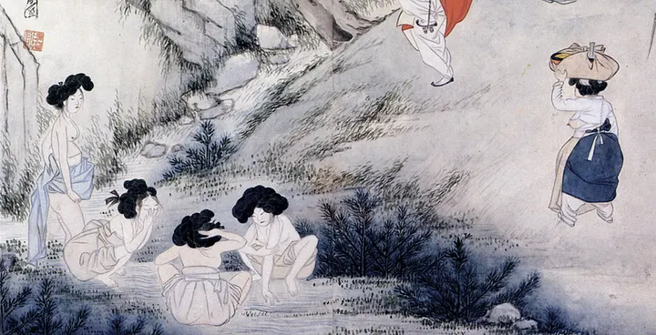 In the Goryeo dynasty, bathing was a customary ritual to pray for the rain. Due to the sanitary concerns of the physical body and religious symbolization, ancient Koreans frequently used rivers, hot springs or oncheon (온천천), or streams near temples. They would bathe there and, as a Chinese envoy noted in 12th-century Goryeo, “There was no shame in bathing together naked with the other gender in pools of water.”